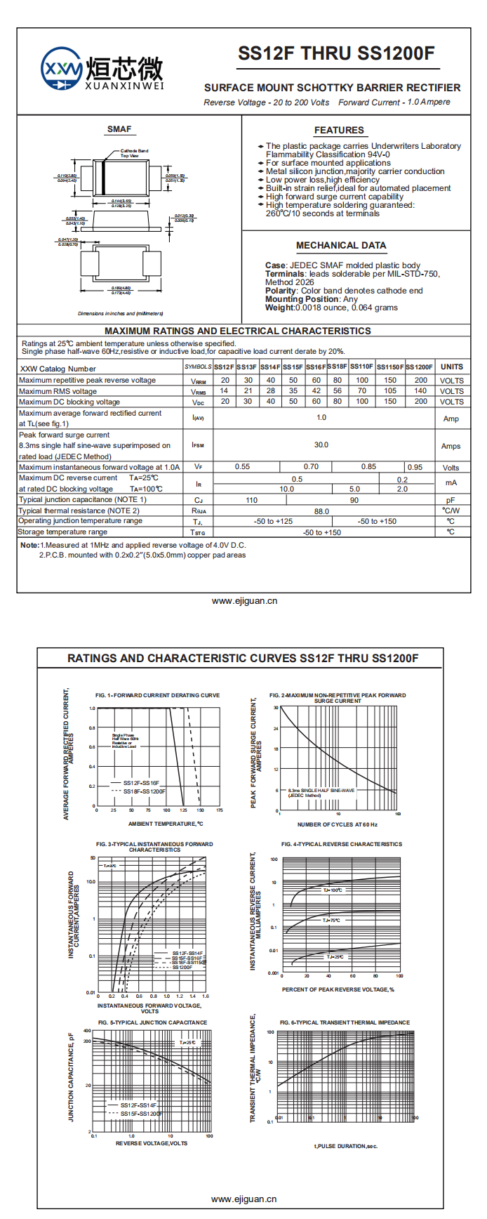 Maximum instantaneous forward voltage at 1.0A VF 1.0A時(shí)的最大瞬時(shí)正向電壓:0.55V